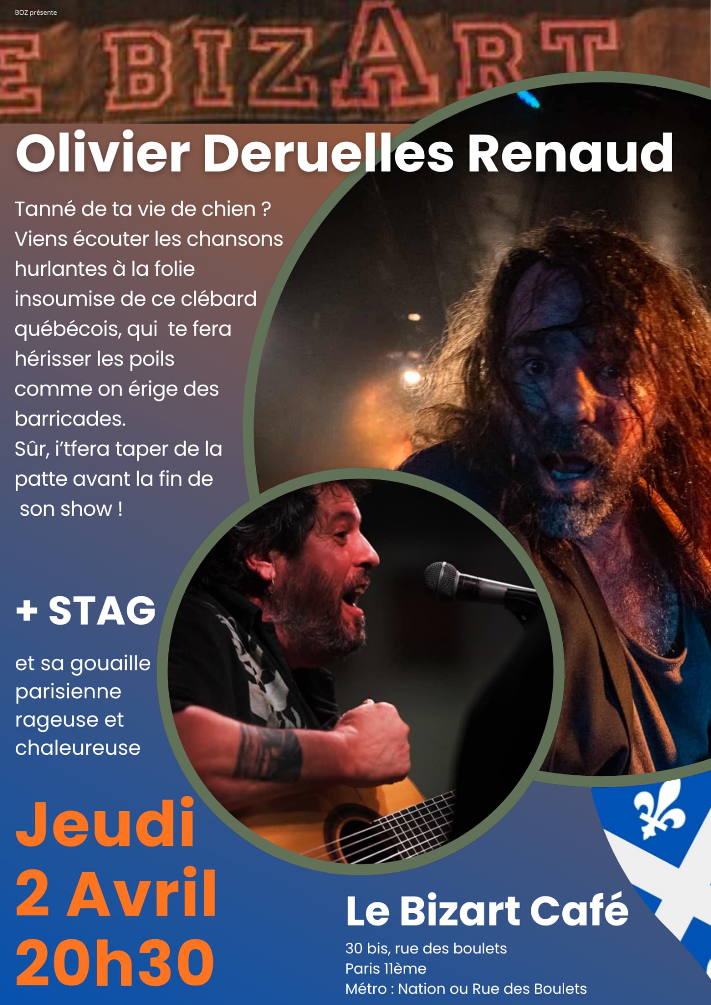 STAG SOLO ET OLIVIER DERUELLES RENAUD au « Bizart Café » 30 bis rue de boulets 75011 Paris à